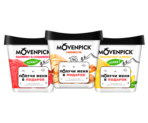 Основой для сорбетов служит фруктовое пюре. Также сорбеты Movenpick не содержат сливок, именно поэтому вы можете не переживать о негативном влиянии на фигуру.